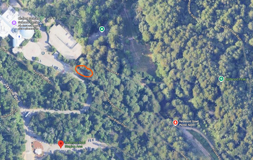 Park in the parking garage southeast of Chabot Space & Science Center and meet at the paved clearing circled in the aerial image below. This will be a one-mile walk on a partially paved, partial dirt path and we anticipate it taking about an hour and half. Note that there is a small hill to get down to the trail from the parking area, and a section in the middle with 15% grade. Seniors and others with mobility issues can opt to wait at the picnic area to skip the steeper portion. For any questions, please email foster@qbsdr.org.